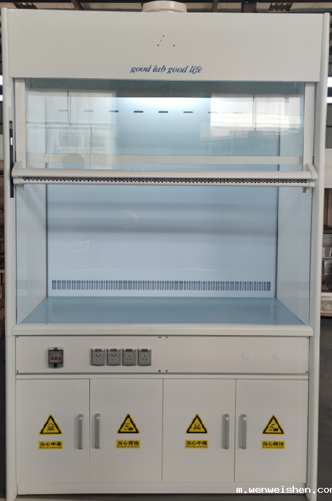 结构为上下分体连接式设计。单台通风柜风量300m³-500m³/h。采用电动、手动、随动一体节能型通风柜。风幕式通风柜工作时,杜绝通风柜内有毒有害气体溢出,同时阻止室内空气进入通风柜内,保持实验室内的温湿度平稳,实现节能。通风柜的补风采用室外自然风补入到通风柜内,严禁采用动力补风。人体感应探测器检测通风柜视窗前1.5m*0.5m范围,无人工作时视窗会自动下降到最底部,保证安全。通风柜满足通风要求时,单台噪音≤45dB。